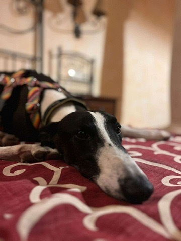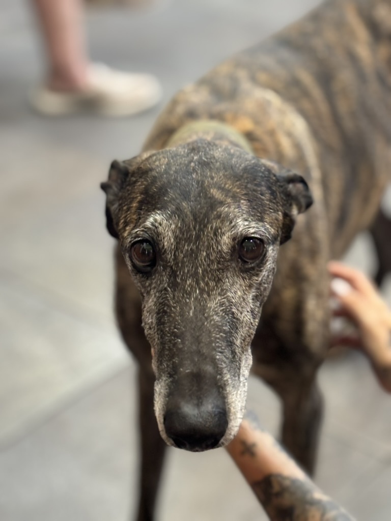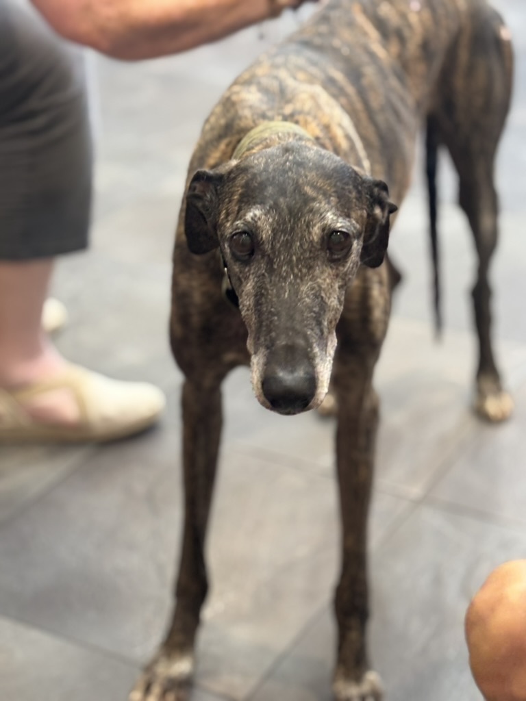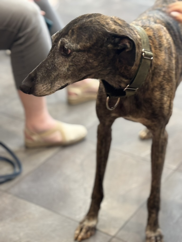 Cesar is a male galgo currently in Spain after being rescued by Galgos en Familia. Cesar is a middle aged dude whose DOB is June 10, 2016. Grateful Greyhounds always tries hard to help out the older hounds. Primarily, because they are usually the absolute best. But also, because they have earned their chance at the comforts of a loving home. I loved meeting Cesar, I found him to be super relaxed and chill. His foster mom works at the Vet Clinic so I got to see how awesome he was with new dogs of all sizes, he was uninterested in the dogs coming into the waiting room. Just a pleasure, quite frankly. Whoever adopts Cesar is getting an absolute gem of a dog.
