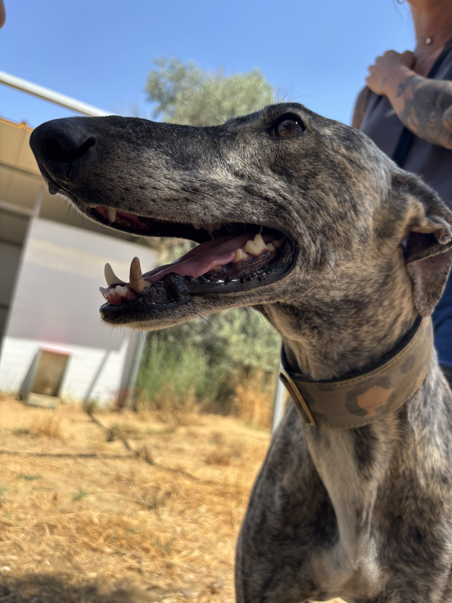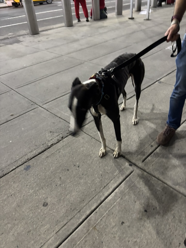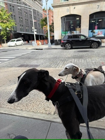 Straight from sunny Spain, Hugo is a young Spanish Galgo who’s not yet two years old and already stealing hearts everywhere he goes. Think of him as a tall, elegant, black-and-white race car with pinstripes — but instead of zooming on a track, he zooms straight into playtime!