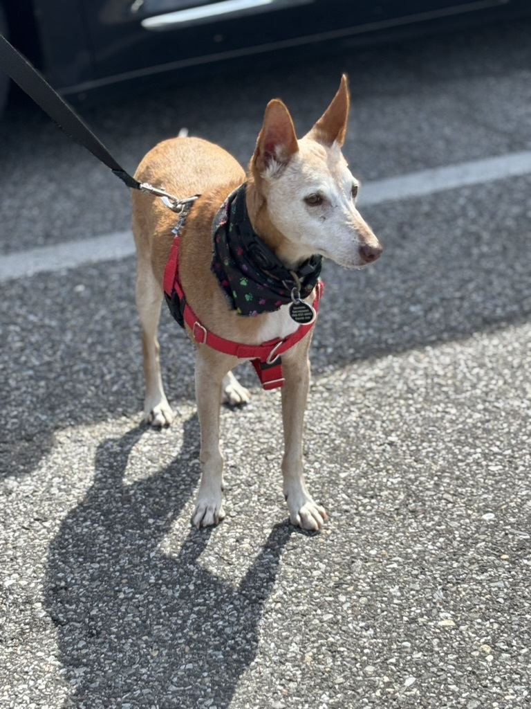 Say hello to Rigo, a small, senior podenco gentleman who proves that great things come in petite, snuggly packages. At first glance you’ll notice those magnificent radar-dish ears—he can practically tune in to your heartstrings. But behind the style is substance: Rigo is sweet, affectionate, and a world-class snuggler who will happily curl up with you after a long day.